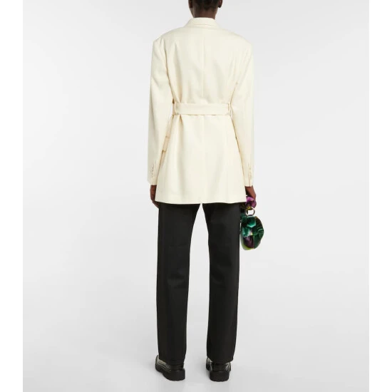 Made from the softest wool knit, this double-breasted blazer from Dries Van Noten has wide pointed lapels and a belted waist.
