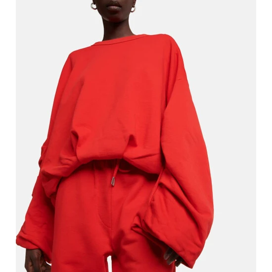 Dries Van Noten reimagines a loungewear classic with the Hannet sweater. Made from red cotton, the oversized style features balloon sleeves and a bubble hem for a modern edge.
