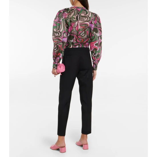 Anchor one of Dries Van Noten’s dreamlike floral blouses with these slim suit pants. Crafted from wool in black, the hardworking design starts at a high-rise waist with front pleating that work as an elongating effect.