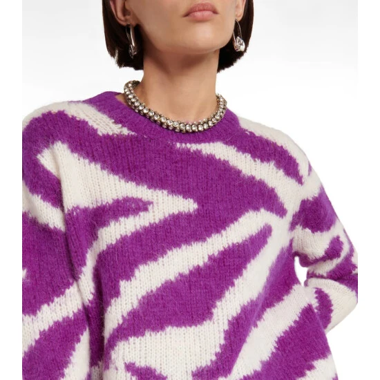 This purple and white Dries Van Noten is made from a blend of wool, with an intarsia zebra motif.