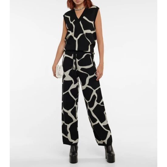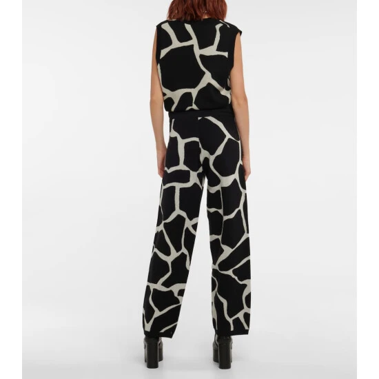 These black and white pants from Dries Van Noten are made from wool to a relaxed silhouette with a graphic intarsia motif.