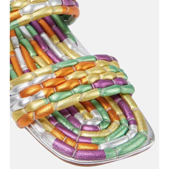 These sandals from Dries Van Noten show that the brand knows how to make comfortable statement footwear. Made in Italy from metallic calf leather, this design features an all-over unique hexagonal pattern with its colors.