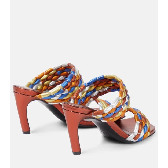 Bring a pop of color to your every ensemble with these multicolored mules from Dries Van Noten. Set on low, curved heels, this square-toed pair is made from printed leather with wide, textured straps.