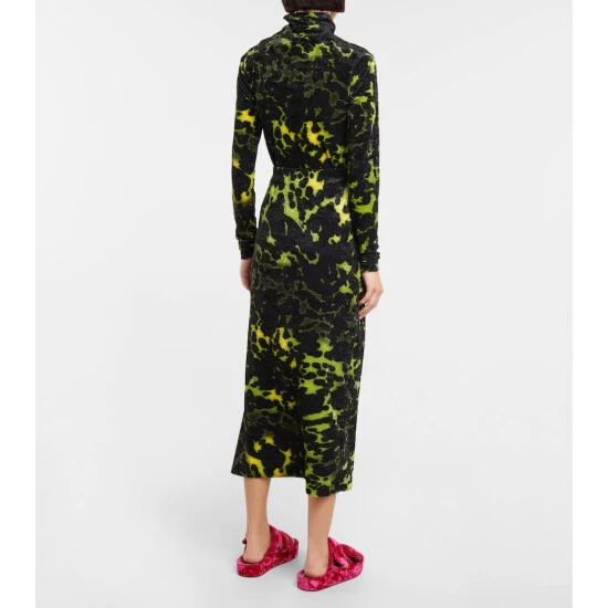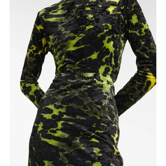 This striking midi skirt from Dries Van Noten is made from stretchy velvet to a minimalist silhouette that showcases a striking green and black print.