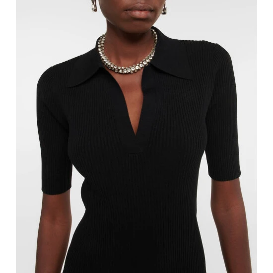 This dress from Dries Van Noten is a feminine take on a classic polo style. Rib-knitted from a wool blend, it has a flattering figure-hugging silhouette and cropped sleeves.