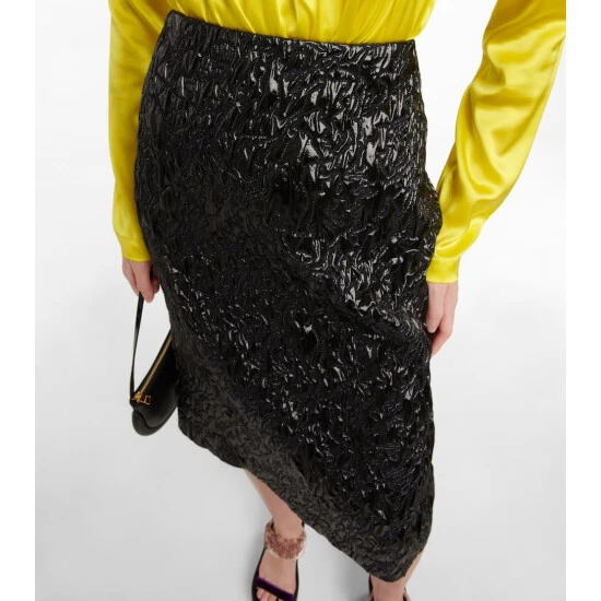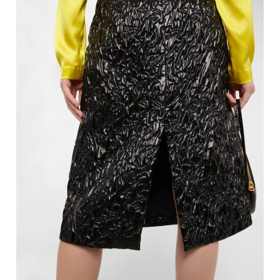 After dark events call for glamorous separates like this midi skirt from Dries Van Noten. It’s made from taffeta and it’s embroidered with a swirling pattern.
